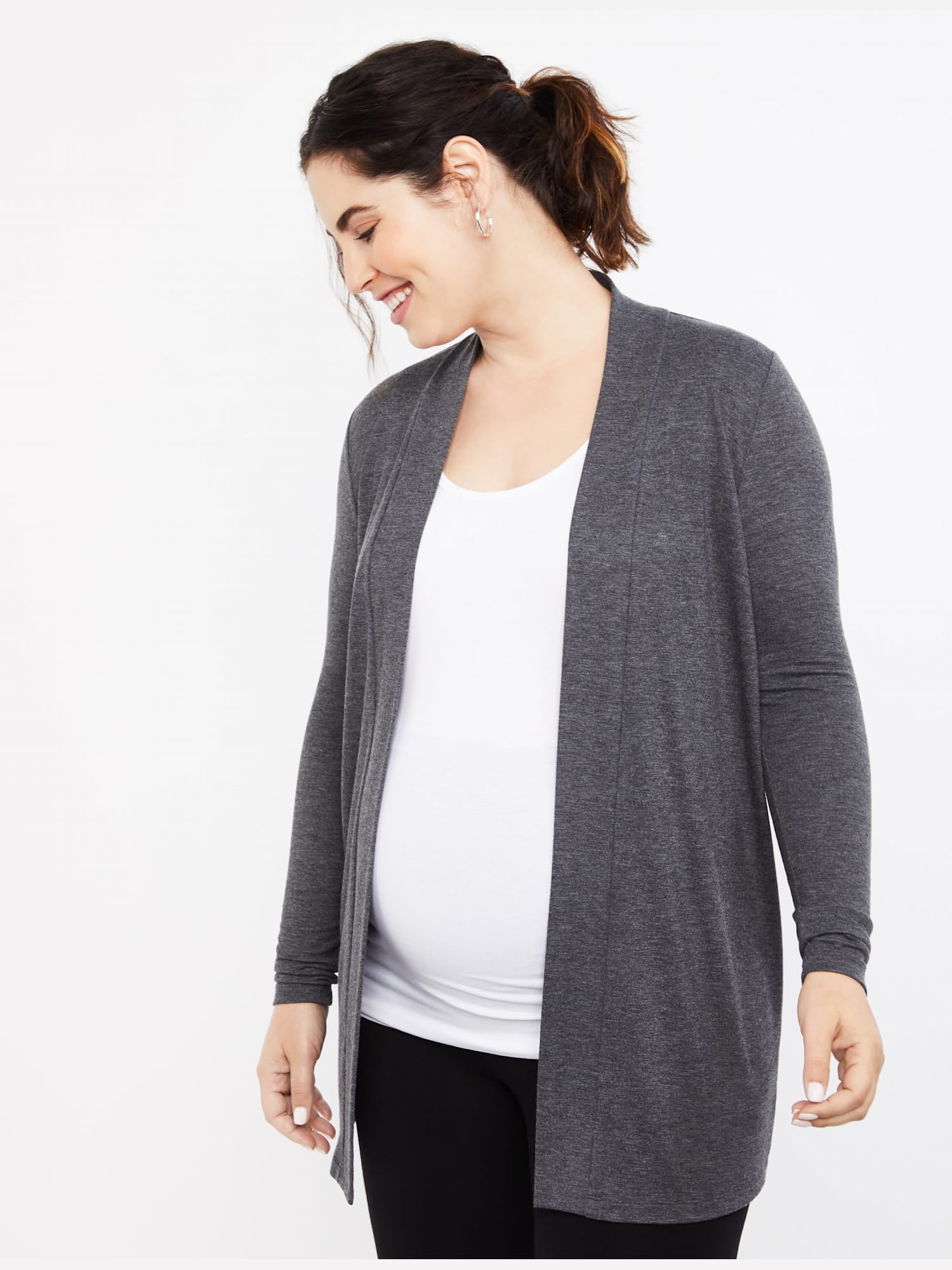 Motherhood Maternity Women S Maternity Open Front Drape Knit Cardigan Black Small At Amazon Women S Clothing Store